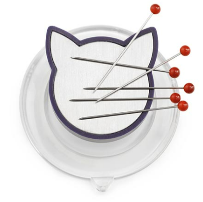 Questa pratica calamita per aghi, dalla simpatica forma di gatto, può essere applicata su qualsiasi superficie liscia e rimossa senza sforzo con una piccola linguetta.